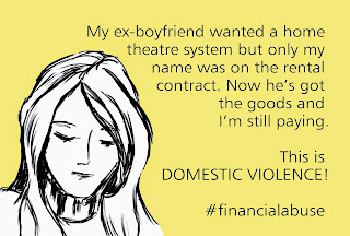 This is how myself, Megan and Melissa were (and still are for Melissa and I) financially abused by the same abuser. It is devastating. While the abuser preserves his finances and spends lavishly on himself, he economically cripples the mothers of his children. He initially financially and economically abused all of us by credit card abuse, running up bills on joint accounts, and not paying his debt, leaving all three of us to pay what he owes. Two of us have children with him, so now the abuser continues financial abuse by refusing to provide employment and income information to determine proper child support, refuses to disclose key material information on the value of the home, hides his assets, refuses to pay his debt from racking up credit cards and joint accounts, refuses to provide basic needs for the children, and evading child support and manipulating the court processes. He avoids his financial responsibility to his children, and if it were not for Child Maintenance programs he would completely abdicate his responsibility all together.